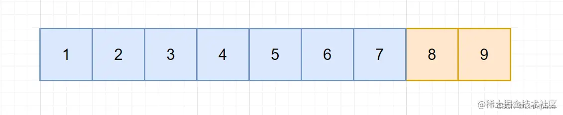 🥥与上面那种不一样,这次我们将原数组分作小于等于7,以及大于7的两部分。