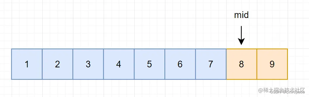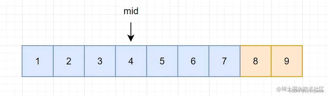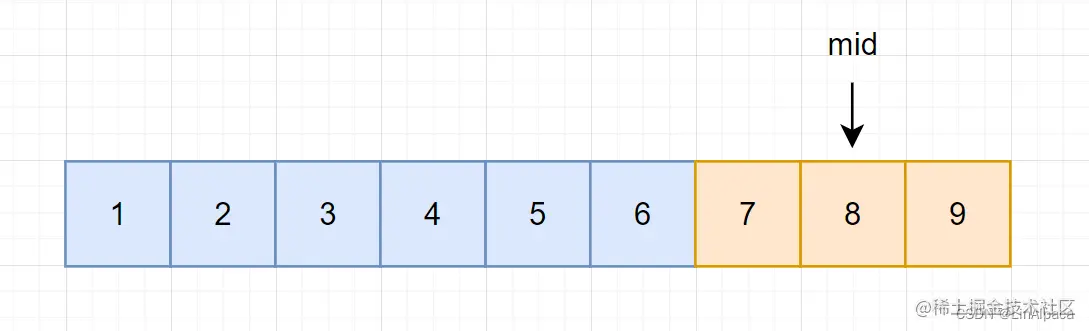 🥥而如果 mid 在右区间,这个区间的范围是大于等于 7 的,当前的值是有可能等于 7 的。