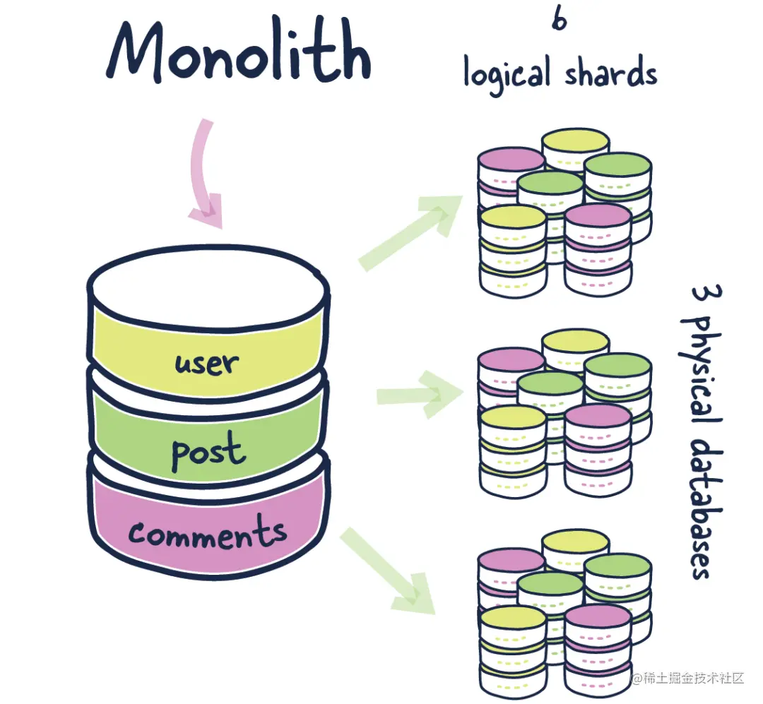 例如,对于像 Instagram 这样的程序,用户和所有相关数据将被分片到同一个物理节点,其中分别包含帖子和评论。通过将相关实体放在同一个分区中,你可以从单个分区中获得更多收益。因此,在整个物理分片和更少的跨物理分片查询中保持更强的一致性。