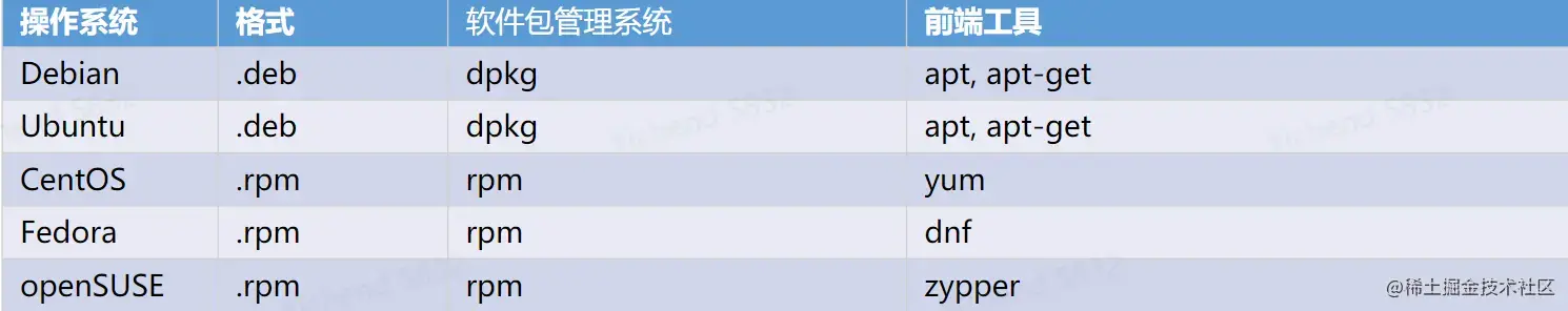 底层工具:例如 DPKG,RPM,主要用来处理安装和删除软件包文件等任务。