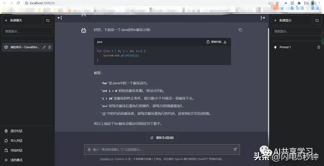好了到此为止,本地的ChatGPT的前端就启动了,然后你就可以随时随地的使用自己的ChatGPT了。