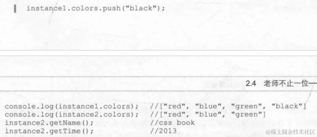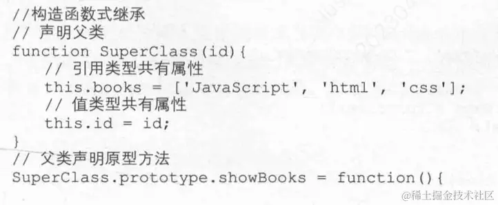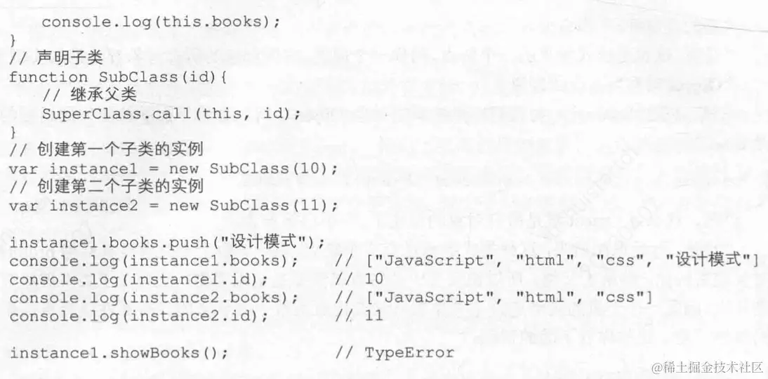 如果父类的共有属性是引用类型,在继承后会被所有子类的实例共用,一个子类实例更改了该共有属性,别的子类实例都会改变。