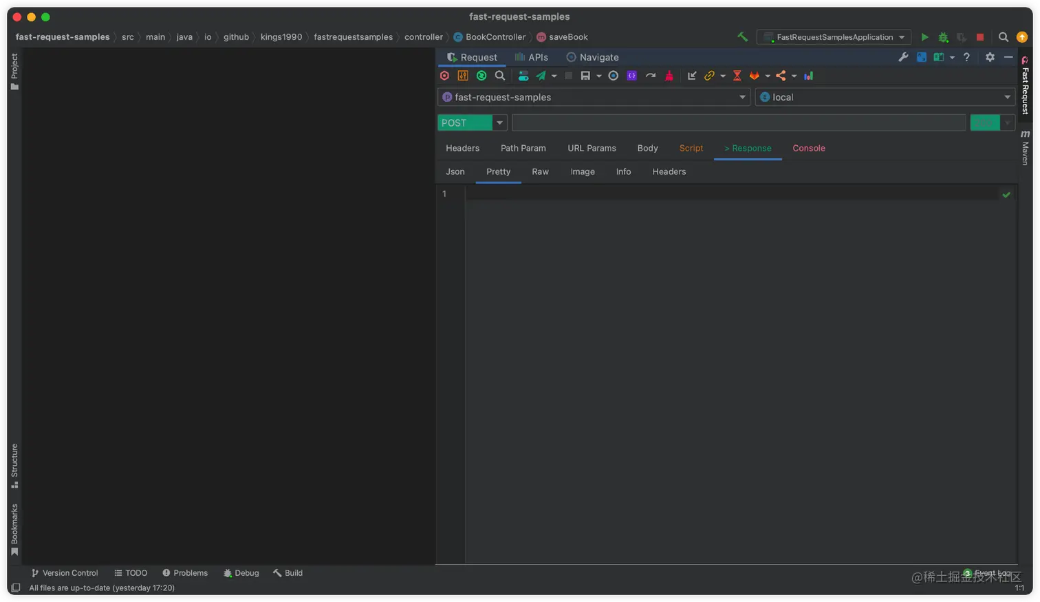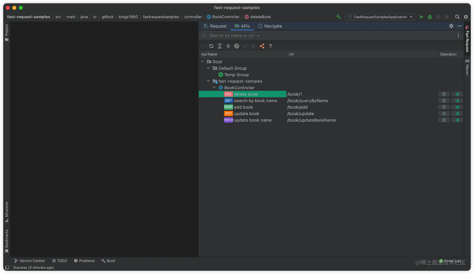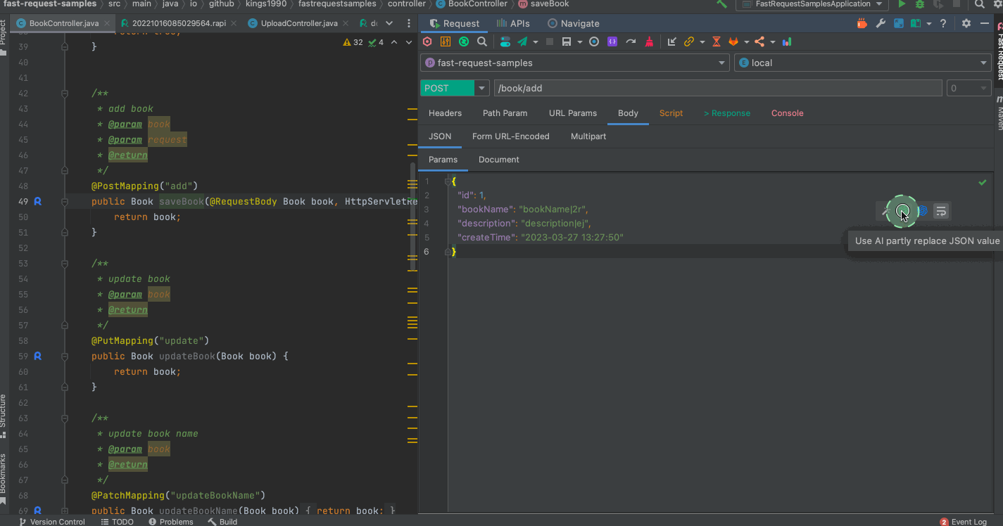 Restful Fast Request 是一个类似于 Postman 的 IDEA 插件。它是一个强大的 restful api 工具包插件,可以根据已有的方法帮助您快速、自动生成 url 和 params。 Restful Fast Request = API 调试工具 + API 管理工具 + API 搜索工具。 它有一个漂亮的界面来完成请求、检查服务器响应、存储你的 api 请求和导出 api 请求。插件帮助你在 IDEA 界面内更快更高效得调试你的 API。