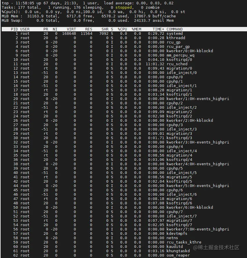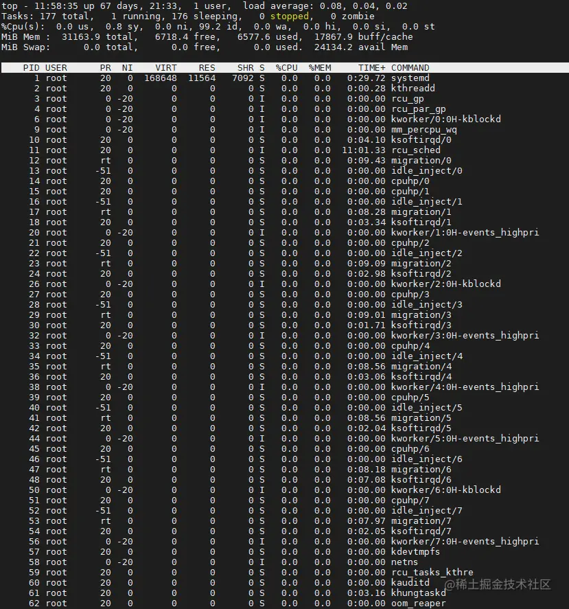 top命令可以实时显示系统中正在运行的进程的信息。以下是top命令的一些示例: