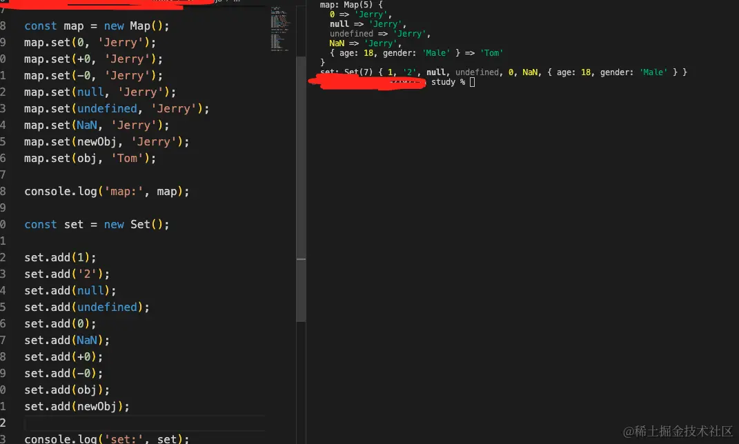 b. 0、+0、-0为同一值,以及NaN,故只能存在其中一个,且引用数据类型作为Key时,如果引用地址一致,那么也只能保持一个