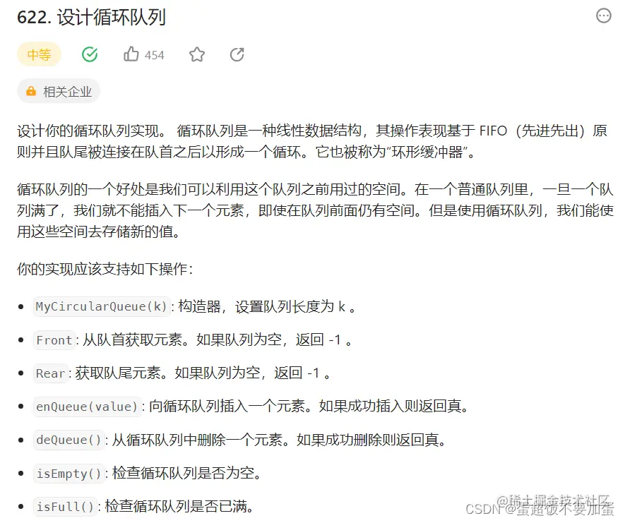 思路:利用静态数组实现循环队列,题目要求队列长度为k,我们额外开辟一个空间,保持始终有一个空间为空,方便判空和判满,队头下标指向队头元素,队尾下标指向队尾元素的下一个位置