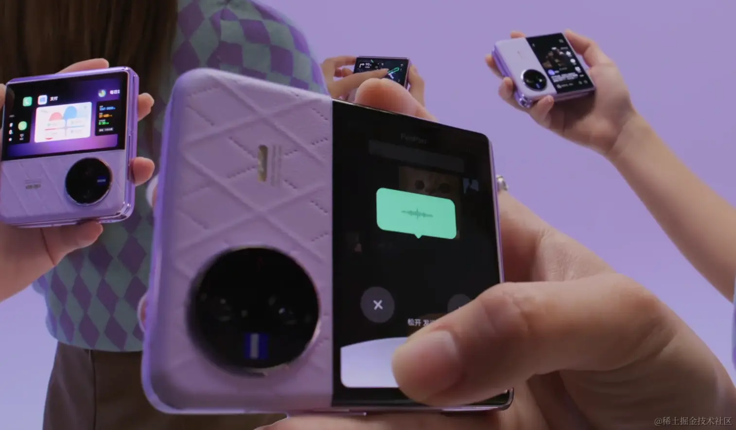 20日晚的vivo新品发布会,我们还将看到vivo旗下首款竖向折叠屏手机vivo X Flip,它将在小巧、轻薄的机身中带给大家更全方位的用机体验。展开状态下,则和我们正常的直板机一样,折叠起来时,利用外面这块副屏,听音乐、打电话、聊天、看导航、刷短视频等统统都能搞定。加上高端质感的「菱紫」素皮设计,时尚气息直接拉满。