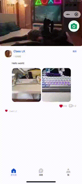 我们继续在上次用Zion制作的朋友圈中加入点赞功能还有删除自己朋友圈的功能,让我们来看一下具体的演示
