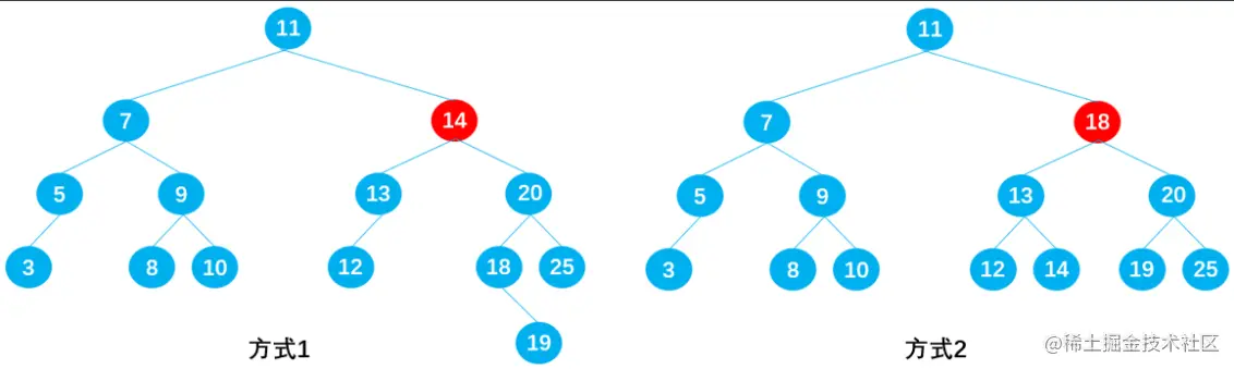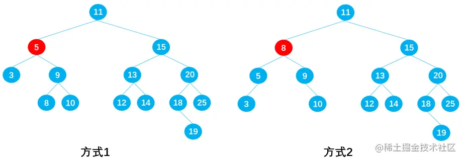 // ~5~ parentNode的子节点(需要判断)指向successor(正式删除current)