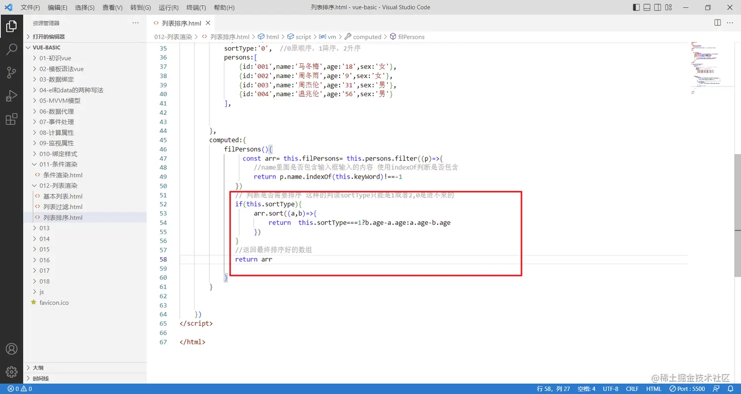 既然知道了使用sort的方式,就可以完善代码逻辑了,在这里不能直接使用参数本身,而是对象里面的age属性进行排序