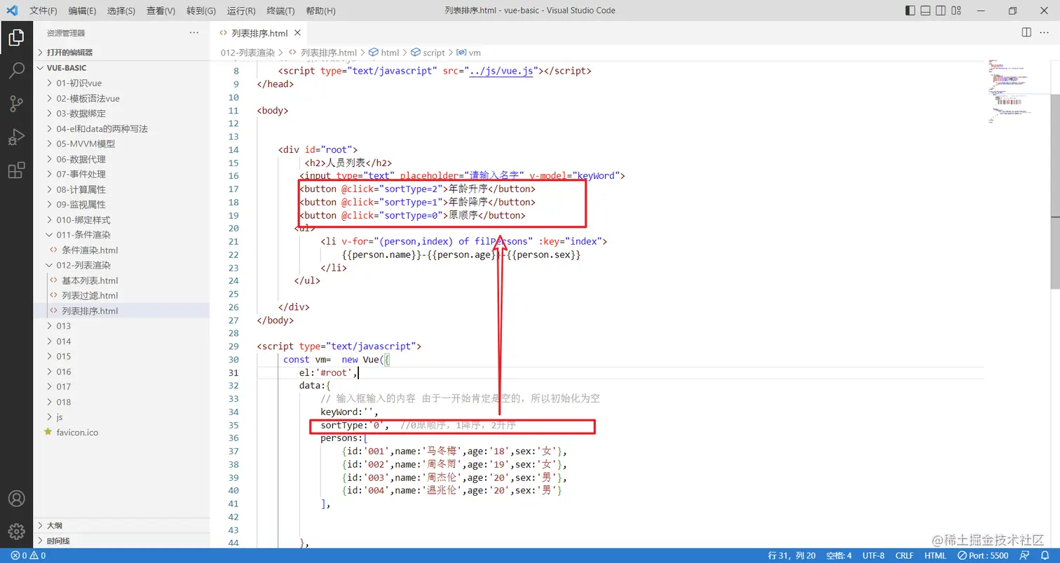 <button @click="sortType=2">年龄升序</button>
