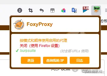 去火狐浏览器下载插件FoxyProxy Standard,使用插件开启代理,这样极大的方便我们开启代理和关闭代理,并会有一个绿色的提示。