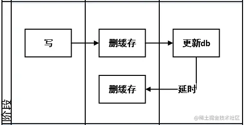 例如:请求 A 删除缓存,这时请求B来查,就会击穿到数据库,B读取到旧的值后写入缓存,A正常更新db,由于时间差导致数据不一致的情况