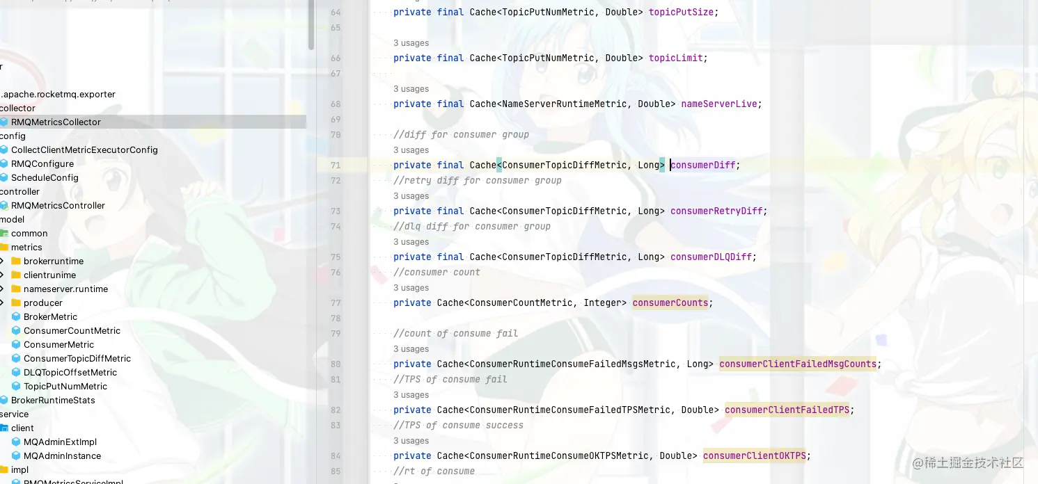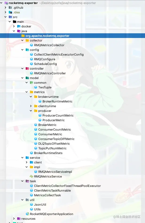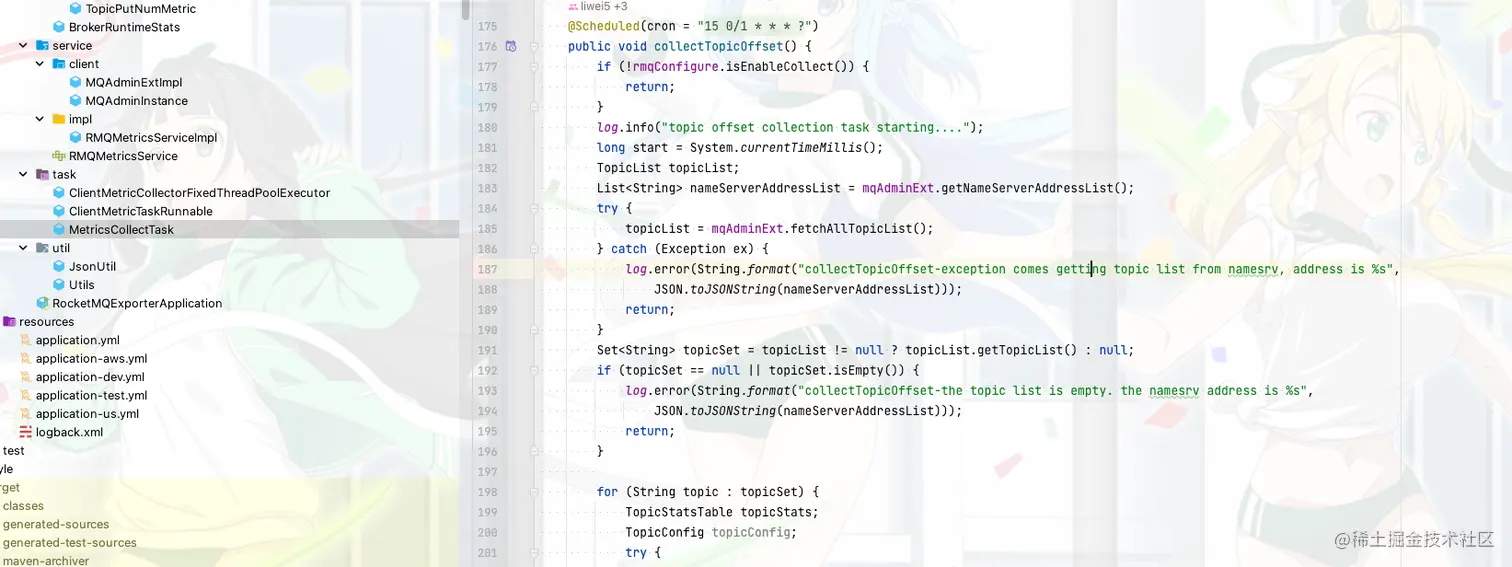 collector: 是最核心的收集器config: 一些rocketmq的配置和定时任务的配置model: 监控指标的model定义service: 里面的代码倒是不用太关注,都是重写了rocketmq-client和controller接口的逻辑task: 定时任务定时去broker统计信息
