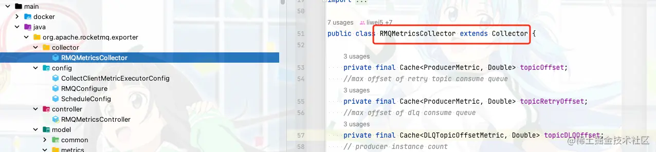指标的统计核心实现类还是在RMQMetricsCollector中,RMQMetricsCollector继承了prometheus的抽象类Collector