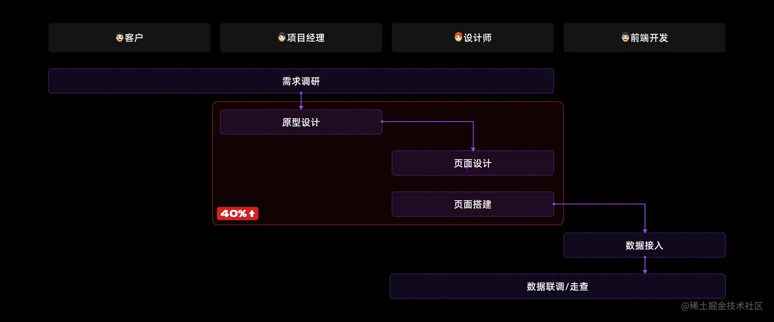 基于EasyV的可视化项目交付包含需求调研、原型设计、页面设计、页面搭建、数据接入等环节,EasyV Charts component 帮助在原型设计、页面设计、页面搭建这些关键节点提效,提升40%可视化图表设计效率,提升10%的可视化项目交付效率。