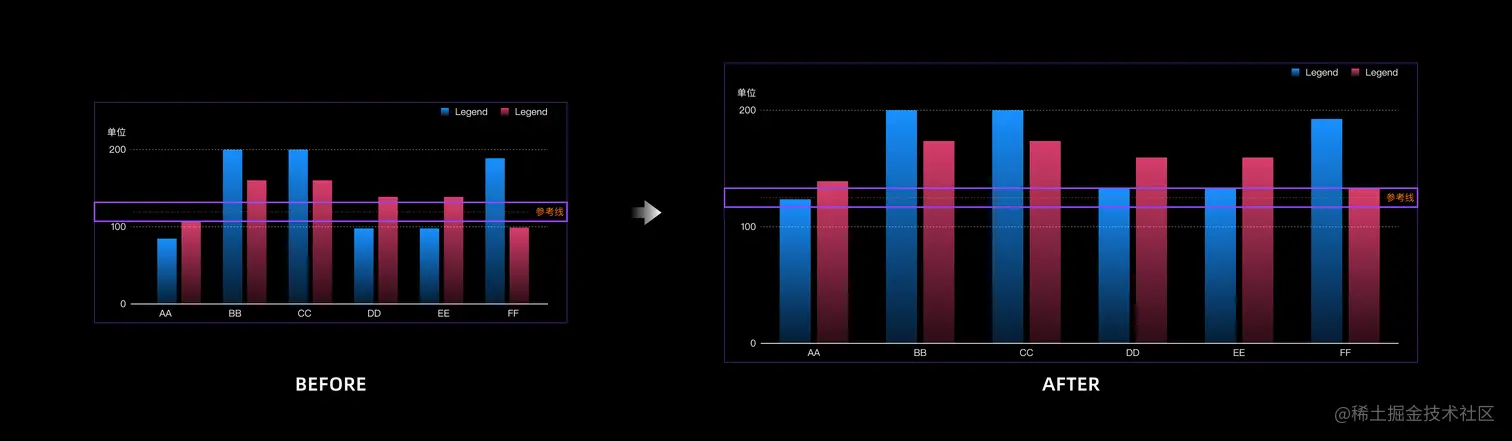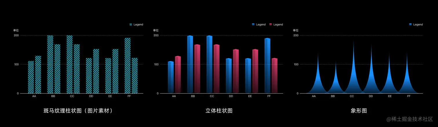 - 更灵活:保留了对于有效柱形高度的配置、以及类目柱间间距、系列柱间间距的可配置性,更好的诠释数据之美