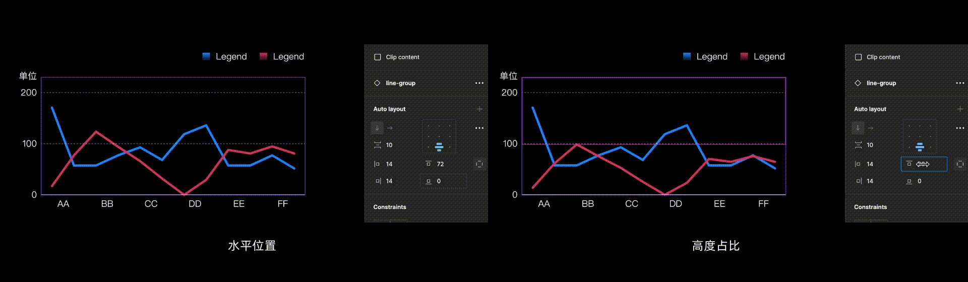 - 各类型图表元素在整个图表容器中布局约束均为左右拉伸+上下拉伸,不改变子级布局方式;