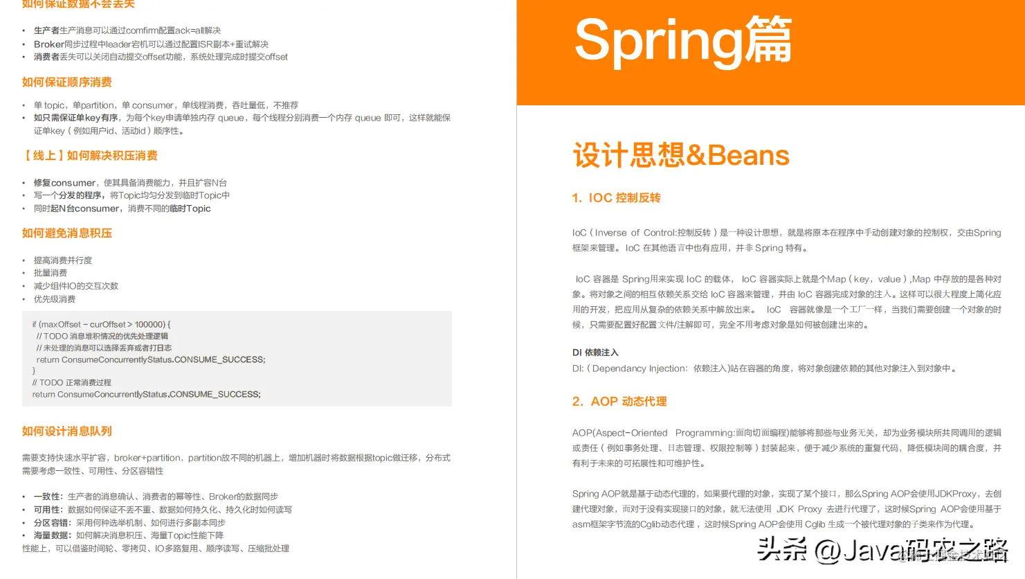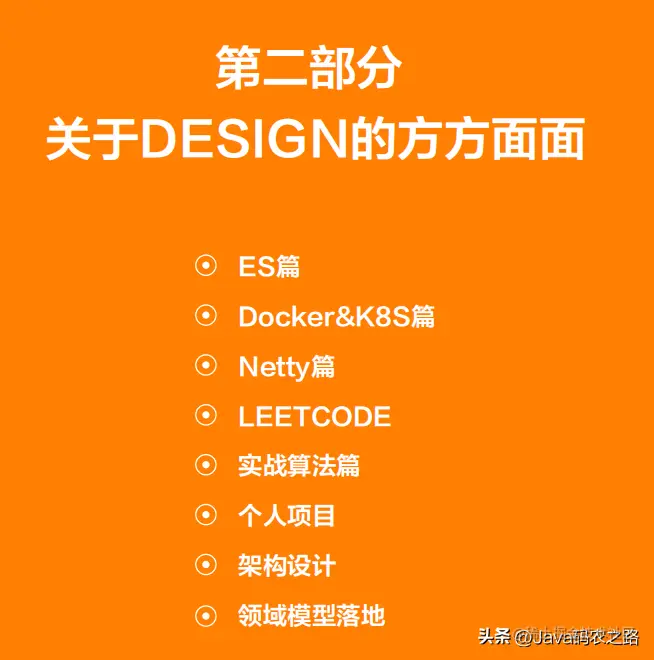 - 包含网络和操作系统基础; JVM、多线程、MySQL、Redids、kafka 等中间件; Spring、 Netty 主流框架的重点知识等,以及结合实践给出的各类难点问题和解决方案等。