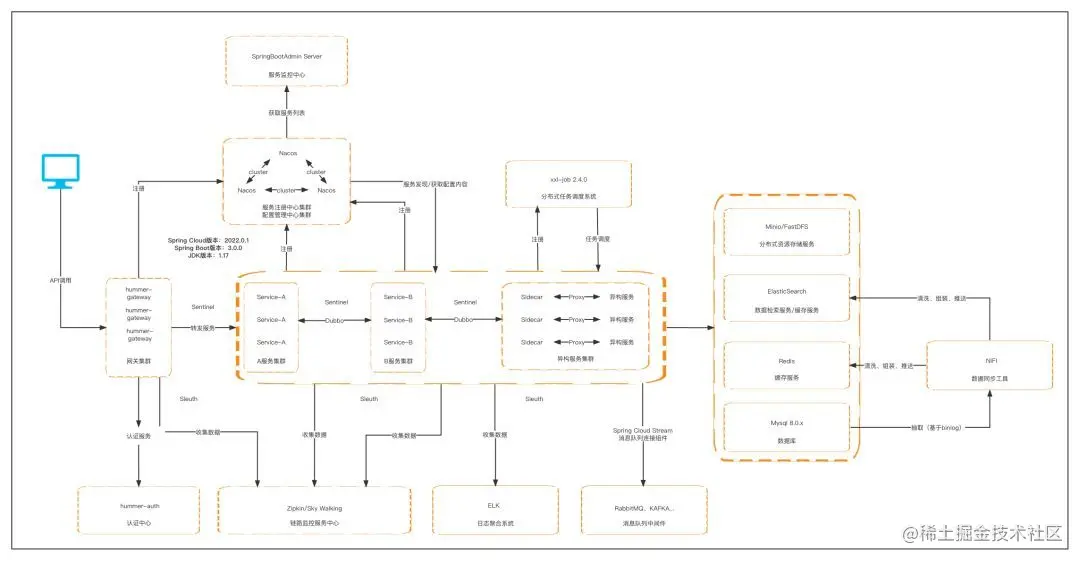 - Spring Cloud:使用了 Spring Cloud 作为微服务框架