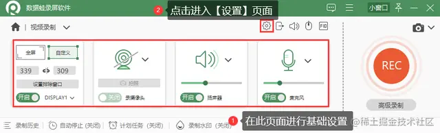 备注:如果您想录制不同参数的视频、或者想在录制前进行一些细节的设置,可以进入软件【设置】页面进行调整。