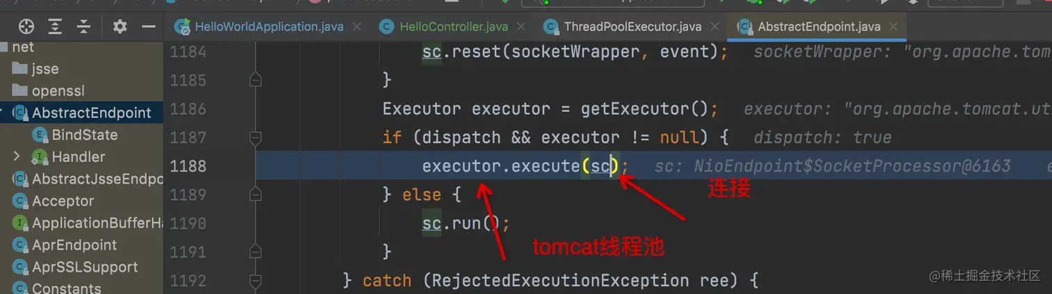 关于tomcat中使用线程池提交浏览器的连接请求的源码如下: