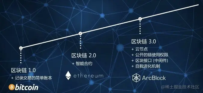 区块链刚开始发展的时候是由比特币这个概念带动起来的,传闻是中本聪利用了区块链的技术发行了比特币,从此比特币作为区块链的首个币种价值一路飞涨,这背后是大家对区块链技术的信任形成的共识让其价值飞升,当然可能有其它的因素。这时候的区块链我们称之为以比特币为代表的区块链1.0技术。