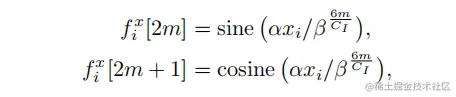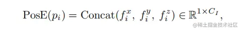 论文参考Transformer中的positional encoding,对于输入点云的一个点,利用三角函数将它嵌入到一个 维向量中: