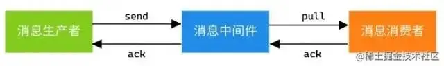 一条消息从生产到消费完成经历 3 个环节:消息生产者、消息中间件、消息消费者。