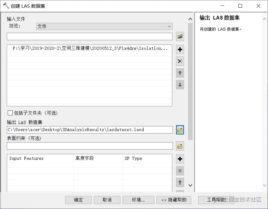 随后,基于导入的LAS数据,创建LAS数据集,如下图所示。