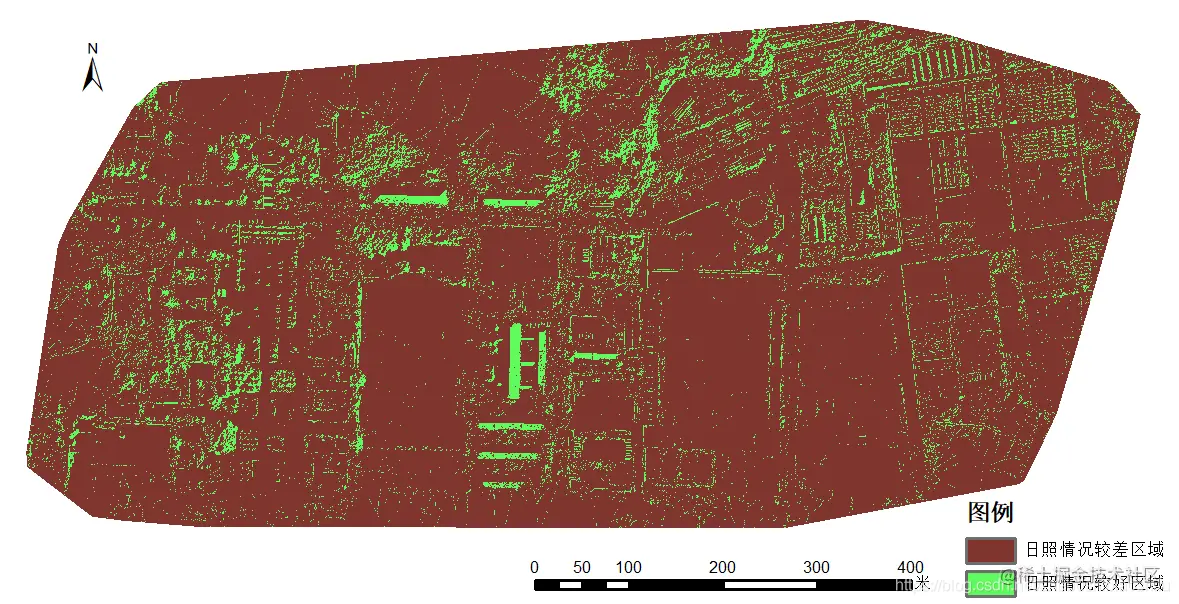将日照情况较好区域加以提取,如下图所示。