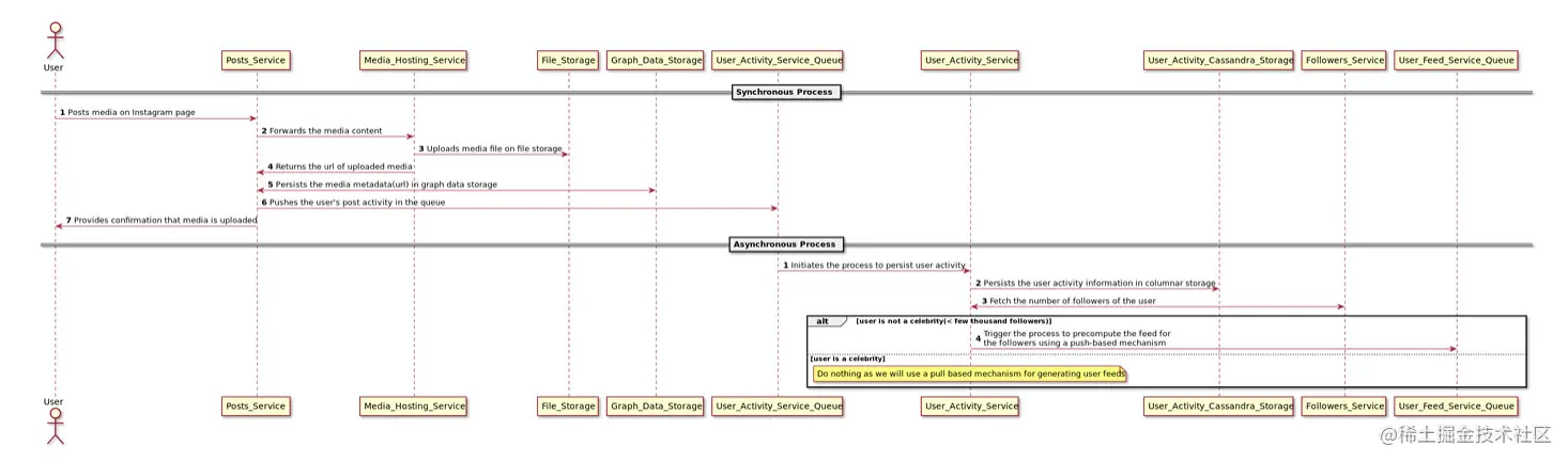 图 2: 在 Instagram 上发帖的同步和异步流程