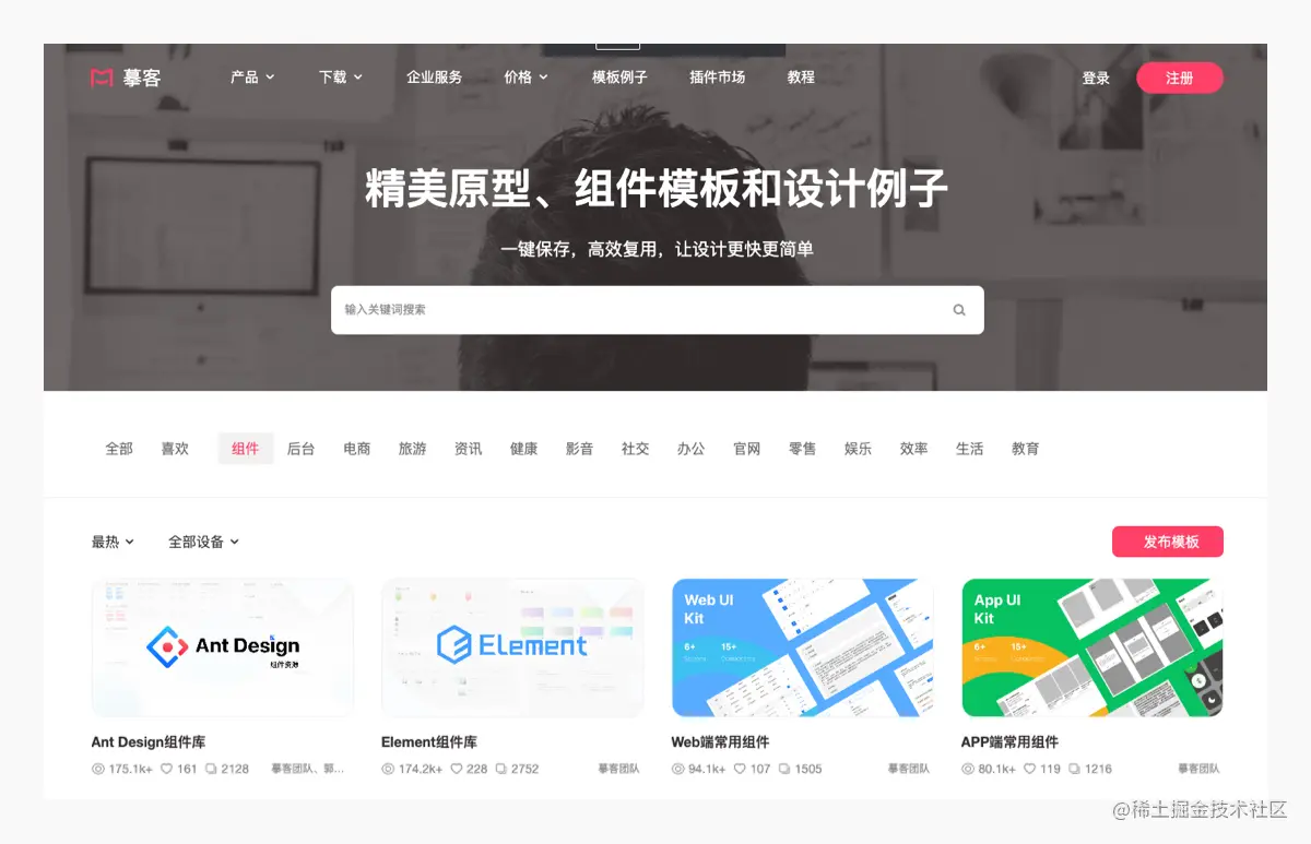 于是大部分国内的设计平台和效率工具研发商(比如摹客),都会直接在自家的设计平台中内置了这些主流的组件库。