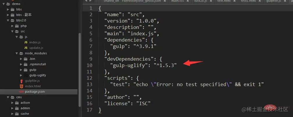 当安装插件的时候用--save-dev添加到package.json里面后,我们可以查看package.json中是否成功写入了该文件