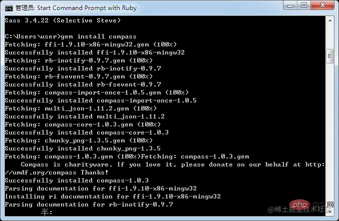 如果需要用compass(compass和sass关系相当于jQuery和js)的话,顺便把compass装上