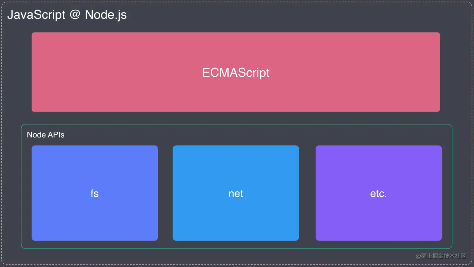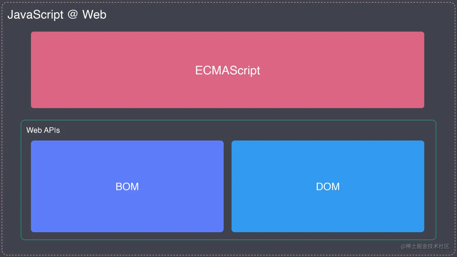 JavaScript语言本身指的是ECMAScript,并且在基础上实现了扩展,在浏览器环境可以操作BOM和DOM,在node环境可以读写文件之类操作。