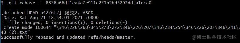 之后就会显示 Successfully rebased and updated refs/heads/master,就是修改成功了。