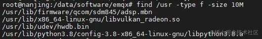 在上面的命令中,-size选项指定要查找的文件大小为10MB。