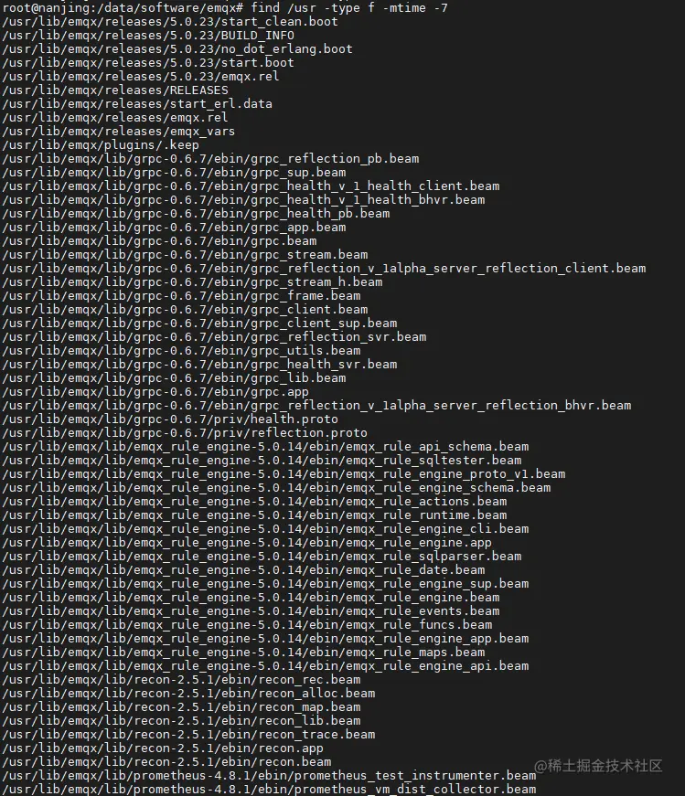 在上面的命令中,-mtime选项指定查找最近7天内修改过的文件。