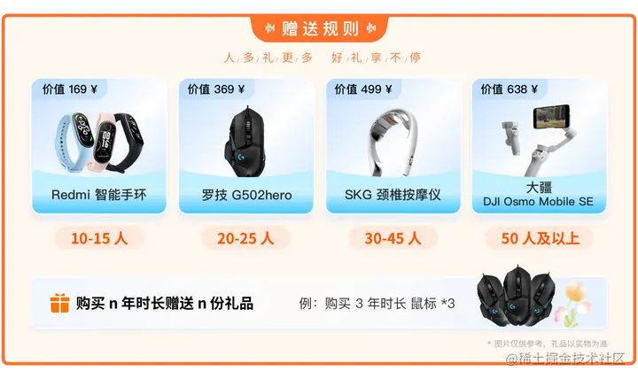 凡未购买过 Gitee 付费版本的企业,活动期间购买任意套餐,即可领取大疆手机云台稳定器、SKG颈椎按摩仪、罗技G502hero电竞鼠标、Redmi小米智能手环2等多重福利!购买多年时长还可以获得复数礼品哦,快前往 Gitee 开启春日焕新旅途吧。