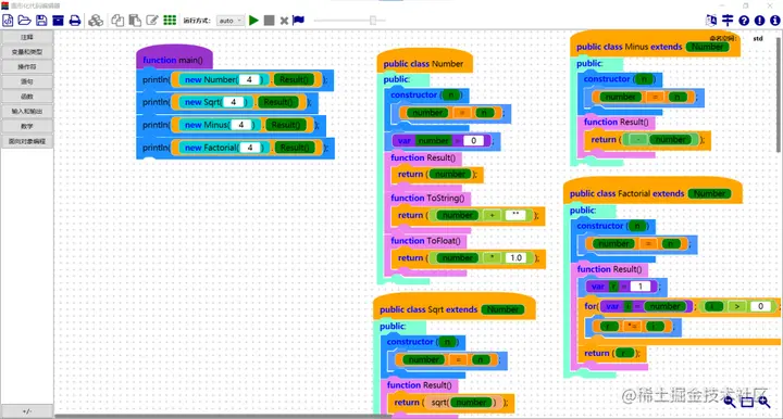 WPF-Blockly 支持所有代码语法,例如变量、类型、局部变量、逻辑、循环、函数、参数、返回值和递归等。