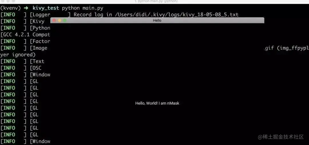 安装完kivy就可以开发app程序了,这里演示下hello-world程序,关于kivy更复杂的用法不是本文重点,后面再成文介绍。