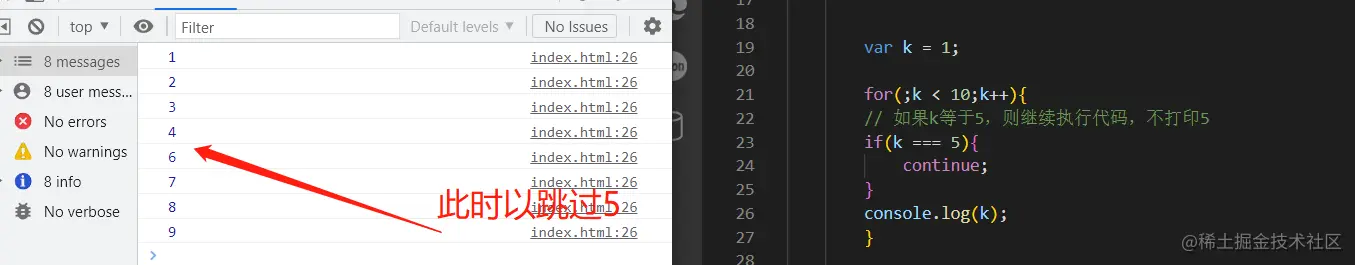 continue关键字可以跳过本次循环,继续执行下一次循环。