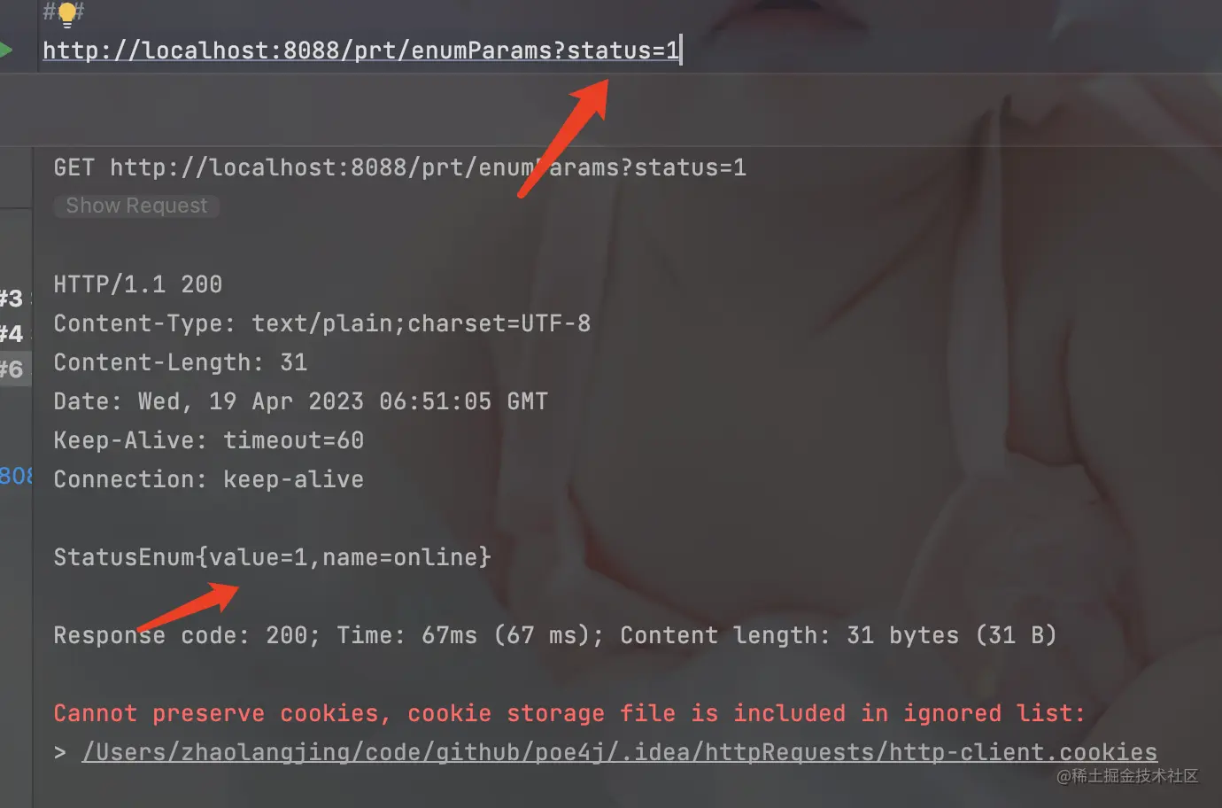 - 通过定时枚举参数注解来标记参数:这是一个枚举类型的参数。