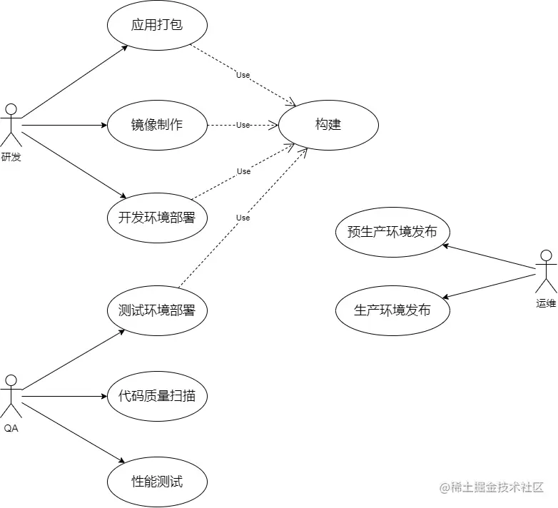 项目中不同干系人在持续集成和部署中会遇到的不同场景,如图所示