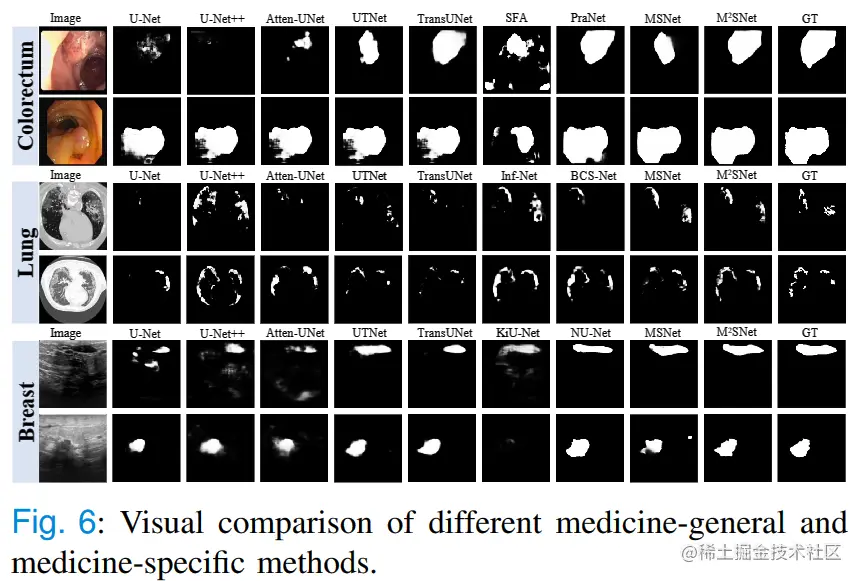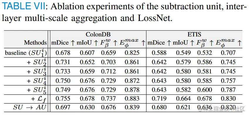 本文设计了基本的减法单元 (subtraction unit, SU) 来产生编码器中相邻级别之间的差异特征,并将单一尺度的 SU 扩展到内层多尺度 SU ,提供像素级和结构级别的差异信息给解码器。此外,还使用具有不同感受野的金字塔多尺度 SU 在不同级别上进行特征聚合,从而获得丰富的多尺度差异信息。最后,构建了一个无需训练的网络 LossNet,从底层到顶层全面监督任务感知特征,从而驱动多尺度减法网络同时捕捉详细和结构性提示。该方法在不同的评估指标下,在包括彩色结肠镜成像、超声成像、计算机断层扫描 (CT) 和光学相干断层扫描 (OCT) 在内的四种不同医学图像分割任务的十一个数据集上获得了惊艳的性能表现。