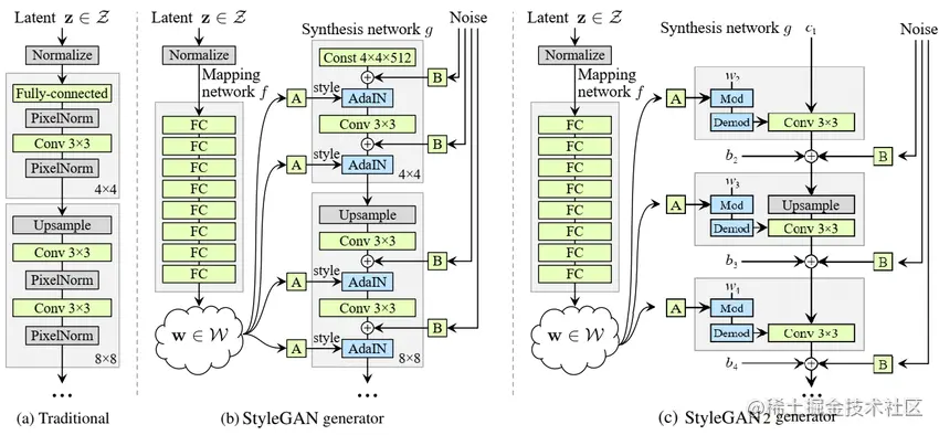StyleGAN便是一种基于AdaIN风格转换思想的生成模型,它将传统输入移除并提出了一个基于样式的生成器,它以可学习常数为输入。该模型通过分别修改每个级别的输入来控制每个层级所表示的视觉特征,而不影响其他级别。StyleGAN2则调整了AdaIN的使用方式,有效避免了水滴状伪影的问题。