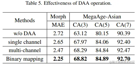 需要注意的是,在训练阶段,为了确保编码的连续性,这里对每个年龄组均执行 DAA 操作。而在测试阶段,我们可以通过选择等间隔的年龄进行 DAA 操作,以加速推理,同时保证连续性和稳健性。