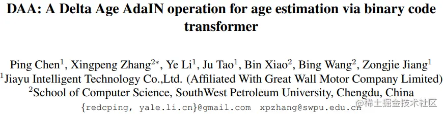 Title: DAA: A Delta Age AdaIN operation for age estimation via binary code transformer