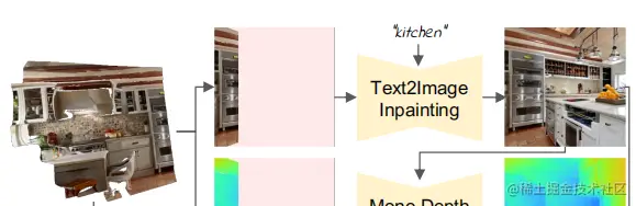 输入一组任意的问题提示,它对应于所选择的位姿 ,论文按照"渲染-细化-重复"模式迭代地构建场景。整个迭代迭的流程如上图所示。